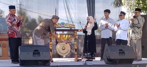 Wakil Kepala Balai Pendidikan Menengah Kabupaten Gunungkidul memukul gong sebagai simbolis pembukaan Farabi #14.
